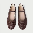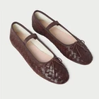 Loeffler Randall Leonie soft ballet flat in espresso brown woven leather with an elastic bridge strap and bow detail. Features a padded footbed with gold stamped logo and an almond toe. Slips on. New, never worn. Size 7.