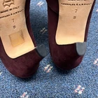 Elevate your ensemble with the Loeffler Randall classic pump, a perfect blend of sophistication and comfort. Crafted in Italy, these burgundy heels feature a luxurious suede upper with a sleek patent finish, offering a polished look for any occasion. With a 3-3.9 inch heel height, these pumps provide a graceful lift that's ideal for both formal events and office wear. The pointed toe design and slip-on style ensure a seamless fit and effortless wearability, making these shoes a versatile addition to your wardrobe. Available in a size 7B, they are tailored to fit the discerning woman who values both style and quality in her footwear repertoire.