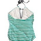 Loft Beach Striped High Neck Halter Slimming One Piece Swimsuit Ties at Neck Halter Style Full Coverage Ruching in front Size: 12 Excellent pre owned condition, no flaws, see photos