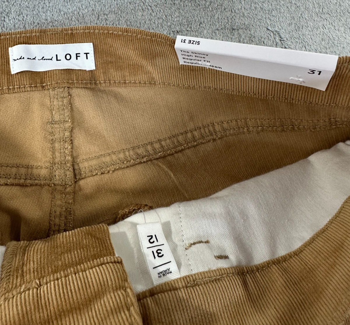 ✨ Loft The Skinny High Rise Corduroy Pants Style: The Skinny Rise: High Rise Material: 78% Cotton, 20% Modal, 2% Spandex Color: Camel Brown Size: 31 / 12 Inseam: Regular MSRP: $79.95 Beautiful Loft corduroy pants with a flattering skinny fit and comfortable stretch. High-rise cut for a modern look and versatile styling. See included photos for measurements. 💛 Thanks for supporting our small family business!