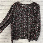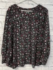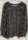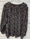 Loft Plus blouse Womens 22 Black floral Button-UP Long Sleeve Tunic Top