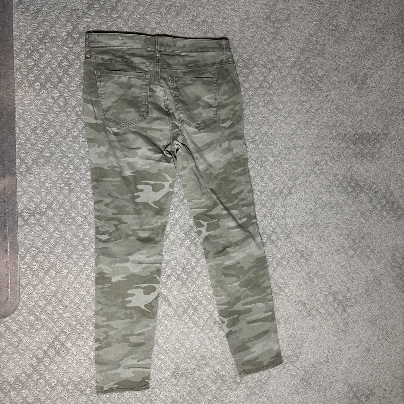 These Loft stretch jeans in green camouflage are a stylish and versatile addition to any woman's wardrobe. With a size 4 skinny fit, these jeans feature a comfortable and stretchy fabric that is perfect for everyday wear. The dark wash and army theme add a trendy touch to the classic style of these jeans, making them a fashionable choice for any casual outfit. The 28-inch inseam provides a flattering fit, while the camouflage pattern adds a unique and on-trend element to the overall design.