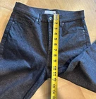 The Loft Women's High Rise Skinny Pants in Black Glitter Sparkle Stretch are a stylish and versatile wardrobe staple. Made from a comfortable cotton blend fabric, these pants feature a solid pattern with a sleek flat front and slim fit. The straight leg style and high rise waist offer a flattering silhouette, while the zip, button, and hook & eye closure ensures a secure and comfortable fit. Ideal for a variety of occasions including casual outings, workwear, and formal events, these pants also feature accents like buttons, zippers, and a logo detail, adding a touch of sophistication to any outfit.