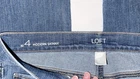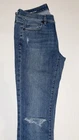Women’s Loft Jeans in a size 4 Light wash, mid-rise modern skinny full length jeans Size 4, 28 inch waist, 8 inch rise, 30 inch inseam Slightly distressed style with holes at the knees and an overall worn in look Blend of 85% cotton, 14% polyester, and 1% spandex and made in Indonesia Standard button/zipper closure with functional pockets A preowned pair in great shape that shows little wear and no noticeable flaws Comes packaged well, cleanly free of both pet hair and smoke smell