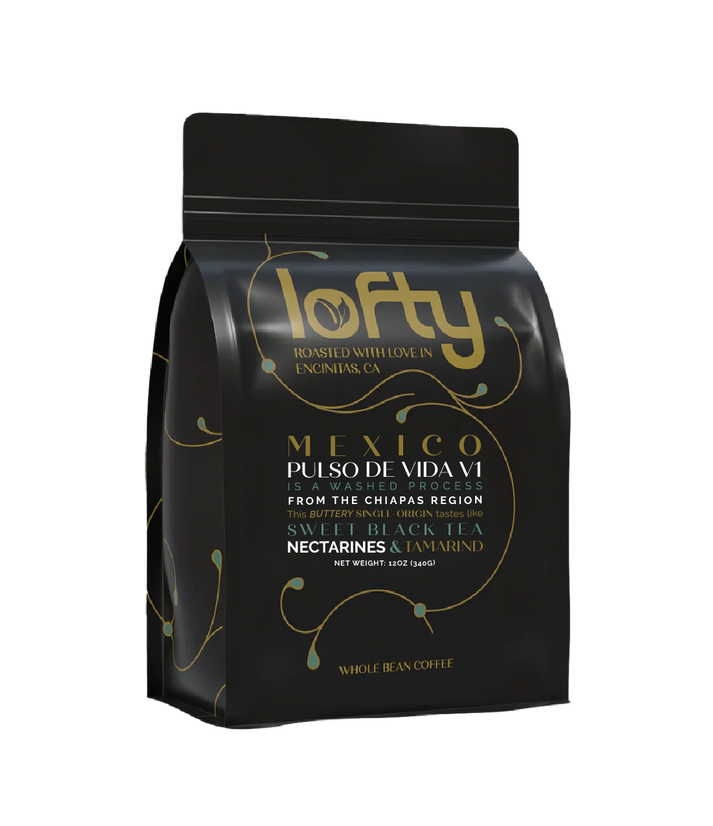 Lofty Coffee MEXICO PULSO DE VIDA V1 *Our Single Origin Roasting Schedule* We take pride in delivering the freshest single origin coffees to our customers. For transparency reasons, we roast all our single origin beans just once a week, exclusively on Mondays. For those who want the freshest single origin coffee delivered to them, we recommend placing your order on Monday or Tuesday. This timing allows us to ship your coffee immediately after roasting it, ensuring your order of single origin coffees shows up at your doorstep as fresh as possible. Tasting notes: Sweet Black Tea - Nectarines - Tamarind Size: 12 oz. Mexico Pulso de Vida V1 comes from the serene community of San Gregorio in Chiapas, where 40 coffee-growing families cultivate their farms at elevations between 1,400 and 1,600 meters. Generations of farmers in this quiet, close-knit region continue their heritage with care, processing Bourbon, Marsellesa, and Typica varietals through traditional washed methods. After a 12–20-hour fermentation in wooden tanks, the beans are sun-dried on cement patios, creating a coffee that reflects both dedication and craftsmanship rooted deeply in Mexico’s coffee-growing tradition. This carefully roasted selection reveals a sweet, fruit-forward cup with notes of apricot and tamarind balanced by a soft, black-tea finish. The cup’s warmth and subtle spice evoke the rhythm of life in San Gregorio—slow, intentional, and full of character—making Pulso de Vida V1 a genuine expression of the heart and pulse of Chiapas coffee culture.
