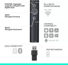 Open Retail Box (Demo) Used a few Times Inspected Tested in Good Looking and Working Condition FREE SHIPPING Logitech spotlight is a game-changing presentation remote. Spotlight allows you to simply navigate slides and interact with on-screen content from up to 100 feet away. The customizable timer sends vibration alerts directly to hand – and the advanced pointer system allows you to highlight and magnify areas of focus in pixel-perfect detail. Highlight and magnify on screen - go beyond traditional laser pointing. Use the advanced pointer system to precisely highlight or magnify areas of focus in pixel-perfect detail. Visible to audience in-person and via video conference. Set your pointer mode with the Logitech presentation app. Enabled via Logitech presentation app. Mouse-like cursor control - Use the on-screen cursor to play and pause videos, open links, and enjoy a range of rich content interaction. Smart time management- Spotlight reminds you when it's time to wrap up. The presentation remote vibrates five minutes before the end of your presentation and again when your time is fully up. Track presenting time and customize vibration alerts in the Logitech presentation app. Enabled via Logitech presentation app. Dual connectivity - connect to your computer via USB receiver or low energy Bluetooth smart. And switch seamlessly between the 2 by plugging or unplugging the receiver. A convenient, built-in dock stores The USB Receiver when not in use. Universal compatibility - Spotlight is optimized to work with Windows, Mac OS and all leading presentation software including PowerPoint, Keynote, PDF, Google Slides, and Prezi.
