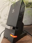Pump up the volume with this set of Logitech X-240 Speakers. Accepting offers. 2.1 channel surround/satellite system comes with a subwoofer and supports THX and Dolby Digital surround sound formats. Plug the headphone jack into your projector (as shown) for an immersive movie experience. Rectangular-shape, black crystal material speakers function with a wide range of brands and models, making them versatile. Easy to set up and compatible with any 3.5mm jack. Plug into your laptop or MacBook’s headphone port or to your PC for the ultimate gaming experience. Bluetooth dongle included as shown in photos. (Compatible with iPhone) -Wired speakers -RMS power of 50 W -Audio inputs for AUX and a 3.5 mm jack. -Adjustable subwoofer power -Additional port for headphones with easy volume control and hideaway cellphone cradle Disclaimer: Used speakers and woofer, small crinkle at the base of subwoofer cone. Does not affect sound quality. Detachable wired speakers will come with subwoofer in padded box for safety.