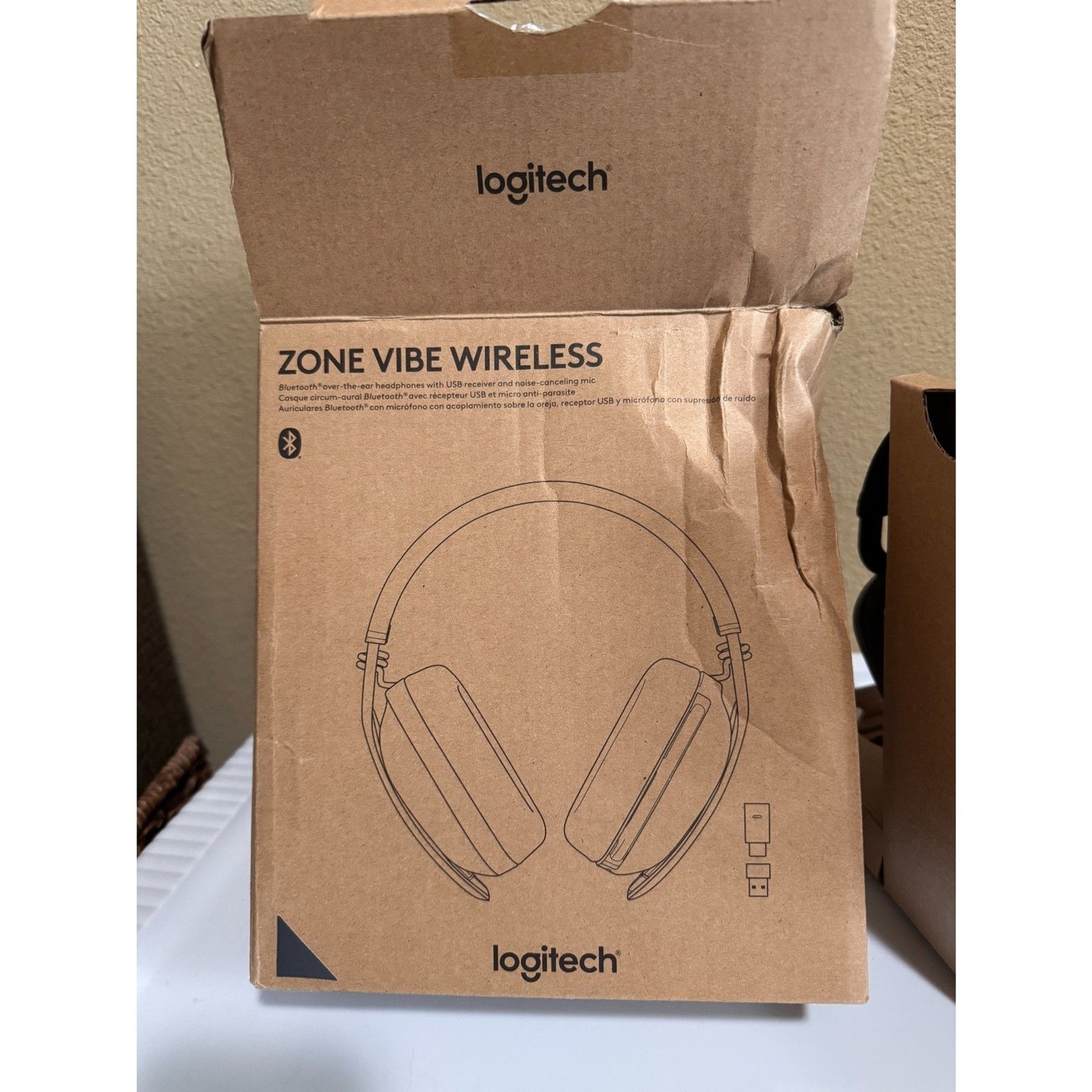Over-the-ear headphones with modern style for hybrid work. Brand new in box. Designed for Microsoft Teams version, with receiver. Has native Bluetooth and should function with normal Bluetooth connections as well. Comes with bag, headset, 2 USB receivers, a USBC charging cable and documentation.
