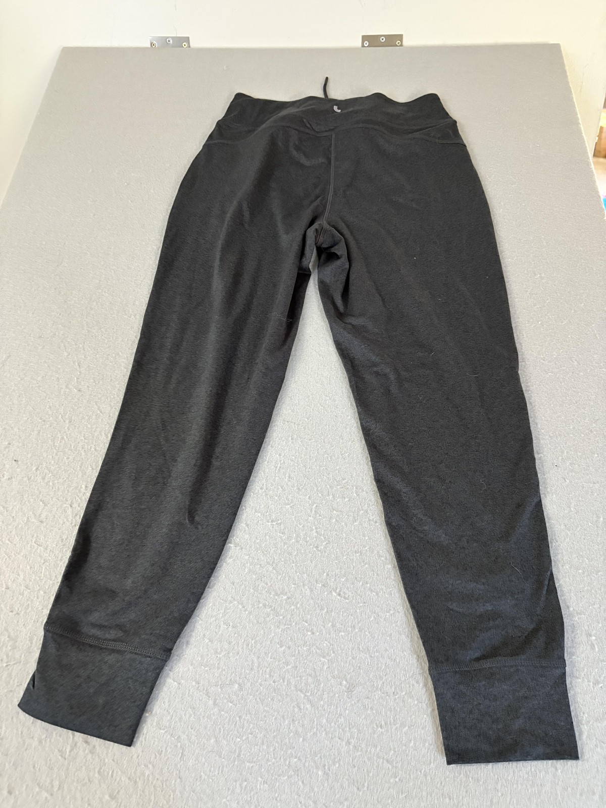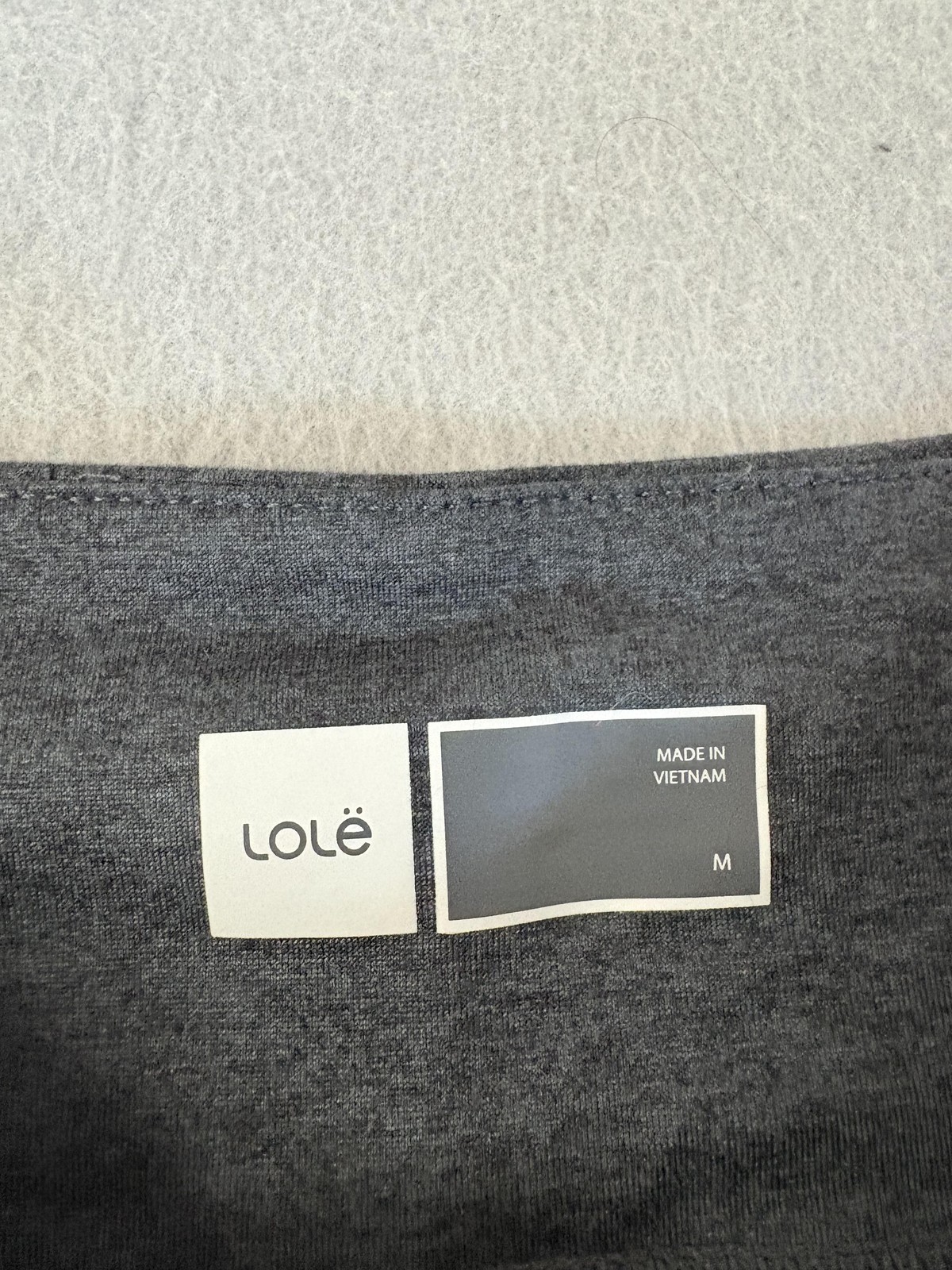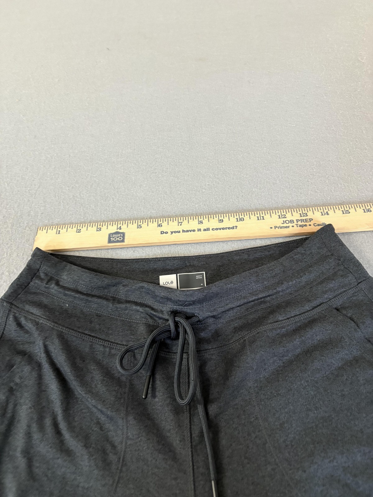 Brand: Lolë Item: Women's jogger pants Color: Charcoal gray Tag size: M (Medium) Country of origin: Made in Vietnam (per tag) Visible branding: Lolë brand tag at waistband Features: Elastic drawstring waistband, front hand pockets, cuffed/ribbed ankles, tapered leg, soft knit comfort suitable for athleisure and lounging Notes: Measurements shown with rulers in photos are for visual reference only; please compare to a similar item for best fit.