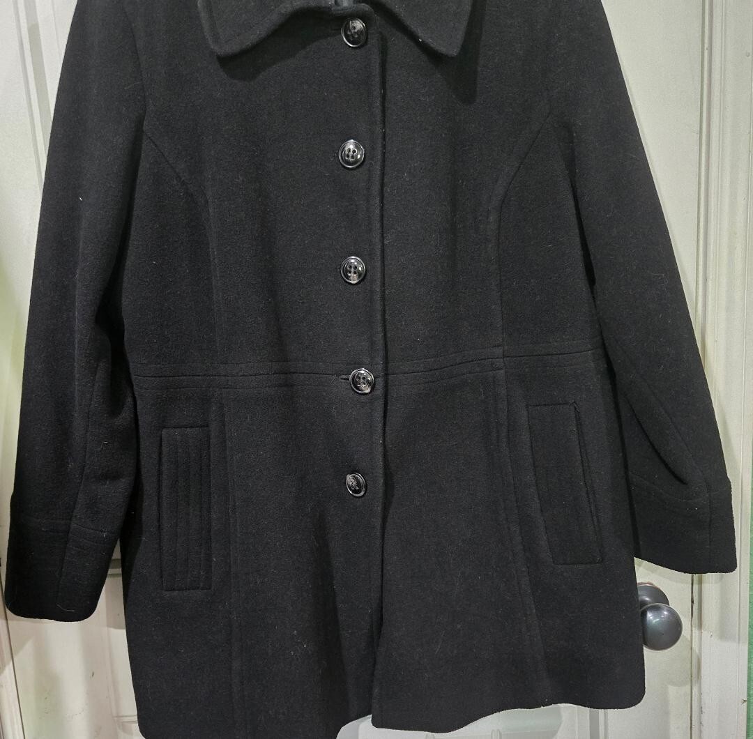 London Fog Mens XL Black Wool Blend Peacoat with Double Closure