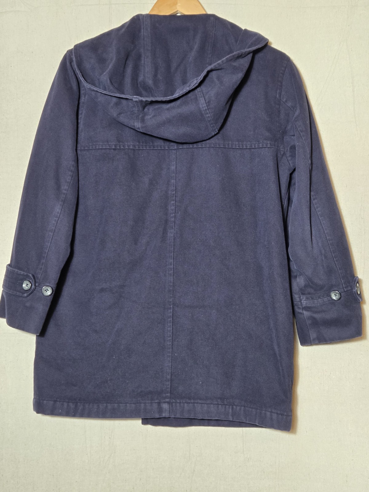 London Fog Trench Coat ,Hooded Navy Blue/Plaid Small Petite 100% Cotton Shell. Condition is Pre-owned - Good. Shipped with USPS Ground Advantage.