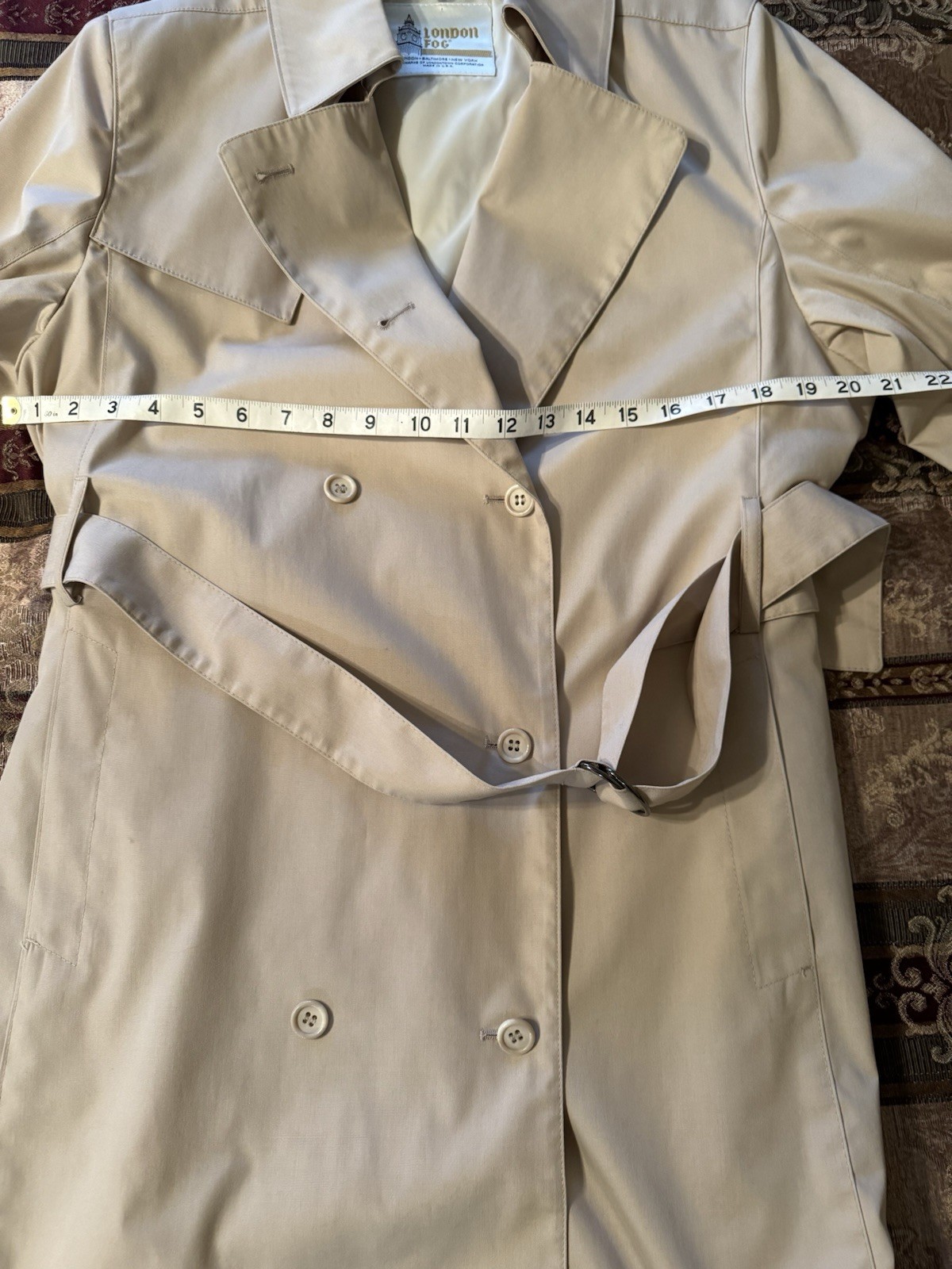 This London Fog trench coat for women in size 12 is a stylish and versatile outerwear garment perfect for travel, casual outings, or business meetings. Made from a durable blend of cotton and polyester, this beige coat features a classic button closure, long sleeves, and a lined interior for added comfort. It also includes pockets for convenience and is designed for regular fit. Ideal for summer, fall, and spring seasons, this trench coat by London Fog is a timeless piece that exudes sophistication and practicality.