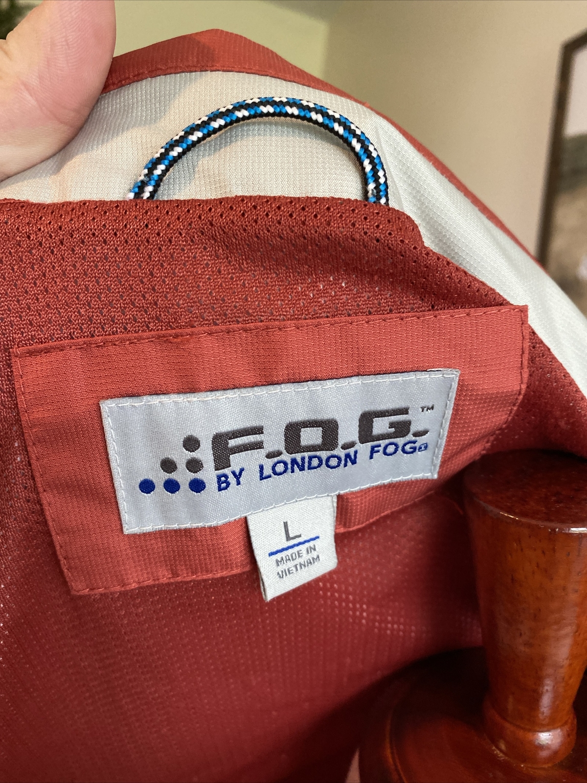 London Fog women’s size large windbreaker lightweight jacket. Dry wick on inside upper chest. Inside security pocket. Velcro on cuffs. Great condition.