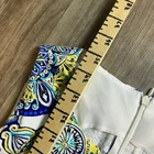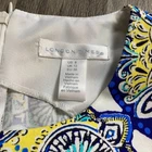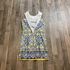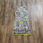 London Times Size 8 Sheath Dress Yellow Blue Geometric Stained Glass Excellent Condition Pit to pit: 17 inches Total Length: 35 inches
