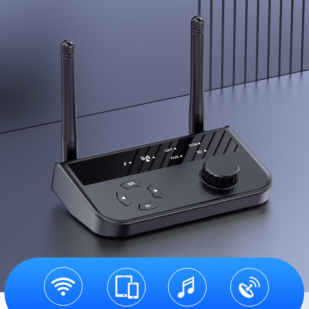 Features 1.High gain dual antenna 10m long distance transmission, dual antenna to improve signal sensitivity, enjoy high intensity and stable transmission at any time 2. Two-way interface, plug and play Automatic connection, according to the mode setting, the interface can automatically become input/output Bluetooth connection pairing after using again that is automatically connected, no need to pair again 3. Lossless sound quality, zero delay in listening to songs, high-definition sound quality output, no lag and no delay 4. Intelligent one to two, share more fun transmitting/receiving can be one to two 5.Transmit mode (TX) becomes Bluetooth TV in seconds, TV wirelessly connects to Bluetooth headset, easy to catch up with drama without disturbing people 6. Receive mode (RX) becomes Bluetooth speaker in seconds, mobile phone through Bluetooth to the old speaker music playback 7. Receiving / transmitting mode, one key switch Bluetooth receiving / transmitting dual-use one, mode switch at will, applicable to a variety of devices Specification: Name: Bluetooth adapter Bluetooth version: 5.3 Colour: black Product weight: about 67g Material: ABS plastic Transmission distance: <10m Dimensions: 110*26*60mm Product list. Bluetooth adapter*1 3.5mm audio cable*1 RCA audio cable*1 Power cord*1 Manual*1