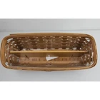 This Longaberger basket is a perfect addition to any country-themed decor. Made of high-quality wood and manufactured in the United States in 2006, this small, rectangular basket is perfect for sorting and storing mail and bills. The warm brown color adds a touch of coziness to any room, and the included protector ensures that your items stay safe and secure. Ideal for all occasions, this Longaberger basket is a must-have for any collector or decorator looking for a rustic touch.