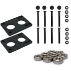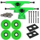 Longboard 181mm Reverse Kingpin Green Trucks 76mm Green Wheels with Bearings & Hardware Description Longboard 181mm Reverse Kingpin Green Trucks 76mm Green Wheels with Bearings & Hardware JUST ADD WOOD - This just add wood package contains everything you need to complete or upgrade a deck. Includes Trucks, Wheels, Bearings, Hardware, and Risers. Just add wood! HEAVY DUTY TRUCKS - These Downhill trucks are 181mm and feature a strong and lightweight aluminum alloy from hanger to baseplate. Having an angle of 50 degree, these trucks give you the right amount of turn paired with stability. They come stock with cast polyurethane bushings. HIGH REBOUND WHEELS - The wheels measure 76mm. These wheels offer the perfect cruise around the city wheel. The softness of these wheels offers for a smooth ride and absorbs vibration without wearing out to quickly. HARDWARE - Includes 1.5” black Phillips bolts. The hardware is made of high-grade steel. Includes a set of 2, 1/4" polyurethane riser pads. These risers feature the 6-hole design so these will fit on virtually all deck and truck combinations. BEARINGS - Comes with ABEC7 bearings. The balls run in deep-grove race ways, and are retained by a self-lubricating Delrin crown. A low viscosity synthetic oil has been added to make these bearings spin great, while keeping friction levels at a minimum. Shipping Orders placed before cut-off time ship same day! Return Policy If you are unhappy with your order for any reason, you can return your items for a refund or exchange. Please review the details on the shipping and payments tab. Hooking Up Skaters Since 2004 About Us Other Listings Give Us a Feedback Powered by Solid Commerce The All-in-One Listing, Inventory & Order Management Solution for Online Merchants