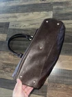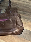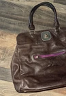 Longchamp Brown Leather Turnlock Large Satchel with Matching Wallet LONGCHAMP 100% Guaranteed Authentic! Dark brown pebbled leather large satchel bag with brushed gold hardware and brown embossed leather horse. Bag measures approx 8H x 14.75 x 7 inches. Twin 5 inch drop rolled leather handles. Interior has one compartment with multiple pockets; Fuscia trim inside has light soil, overall clean. Turn lock closure (hardware has some scuffs). Leather is in Excellent Clean Condition. Overall the bag is in Very Nice Condition Made in France. Comes from a Smoke-free environment.