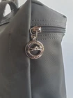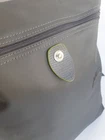 New Unused Longchamp Graphite Green Le Pliage Folding Backpack. Features: * Approximate dimensions: 10.25"W x 11"H x 4"D , Handle 2" drop * Two adjustable shoulder straps * Zipper and snap closure * Interior patch pocket * Silvertone hardware * Trim: leather * Imported