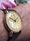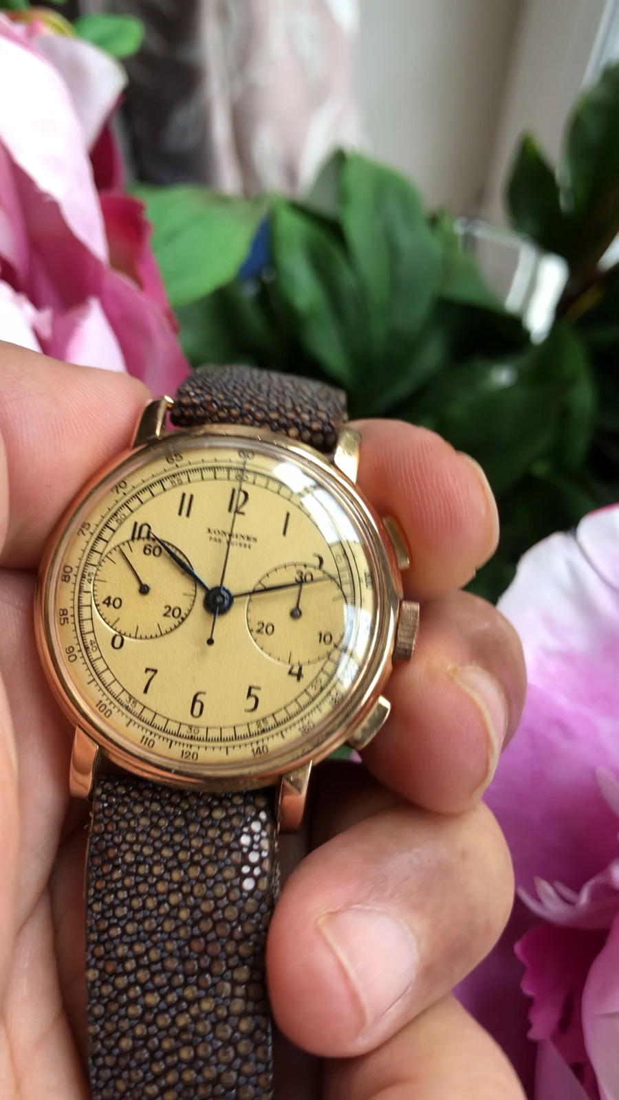 This Longines 13ZN Flyback Chrono is an absolute masterpiece! The 18k gold case and pristine champagne dial with black Arabic numerals exude timeless elegance. As the first wristwatch with a flyback function, its historical significance is unmatched. The 1940s craftsmanship shines through in every detail—from the square pushers to the flawless original condition. A true collector’s dream that blends vintage charm with groundbreaking Swiss horology. Wearing it feels like owning a piece of watchmaking history!