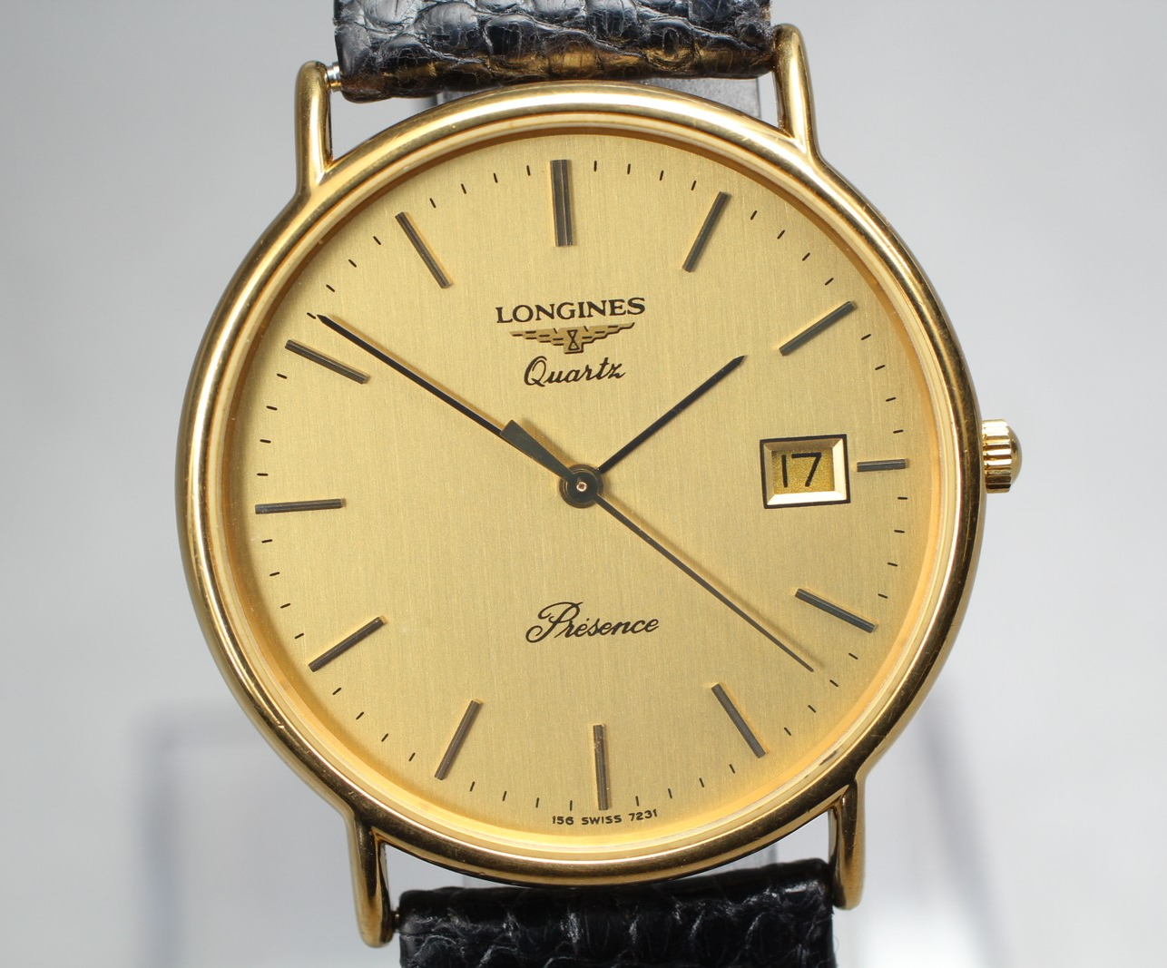 Longines Présence Quartz Watch Gold Dial Date – Original Band – Japan #1000048303057 Description ⚠️**IMPORTANT NOTICE FOR INTERNATIONAL BUYERS.(especially EU countries including Germany)** Import duties and VAT are **not included**in the item price.These taxes **must be paid by the buyer upon delivery**. If you refuse the package due to unpaid customs, we will **deduct all shipping costs and handling fees**from your refund. Total Condition; Pre-owned, minimal signs of use , all original (see photos) Band: Original black leather (shows signs of wear, buckle has paint loss) Case size is 33mm without crown. Wrist is 18cm, approx.7.1 inch. Appearance; Appearance is beautiful. tiny scuffs from normal use. It shows signs of use. *Please check photos. Functional; It works properly. Bundled Items; All you can see on the picture will be included in a set of a package. Above condition is based on my own opinion. Please check the photo carefully. Please feel free to contact me for any questions! Thank you. Shipping I send a product by DHL,EMS. I attach the tracking number. Please bid it without worrying. Shipping is available from Monday to Friday. Weekends are not available because office is closed. Storage and Packing Storage Immediately after shooting, it is placed in a closed container with desiccant and stored for 24 hours and 365 days in a temperature and humidity controlled warehouse. All products, including cameras and lenses, are stored in a temperature- and humidity-controlled warehouse 24 hours a day, 365 days a year. Packing By weight and shape of each product, I use 13 kind of cushioning materials and pursue safety and weight reduction. Returns Unconditional Return Policy Customer service and satisfaction are very important to us. I have an unconditional return policy if notified within 30 days of the receipt of the item. All returned items must be the original condition. All return requests must be made within 30 days of the receipt of the item. Please contact me first for return before you ship it back to me. The postage of the returned goods is a buyer burden. International Buyers Please Note: Import duties, taxes, and charges are not included in the item price or shipping cost. These charges are the buyer's responsibility. Please check with your country's customs office to determine what these additional costs will be prior to bidding or buying.