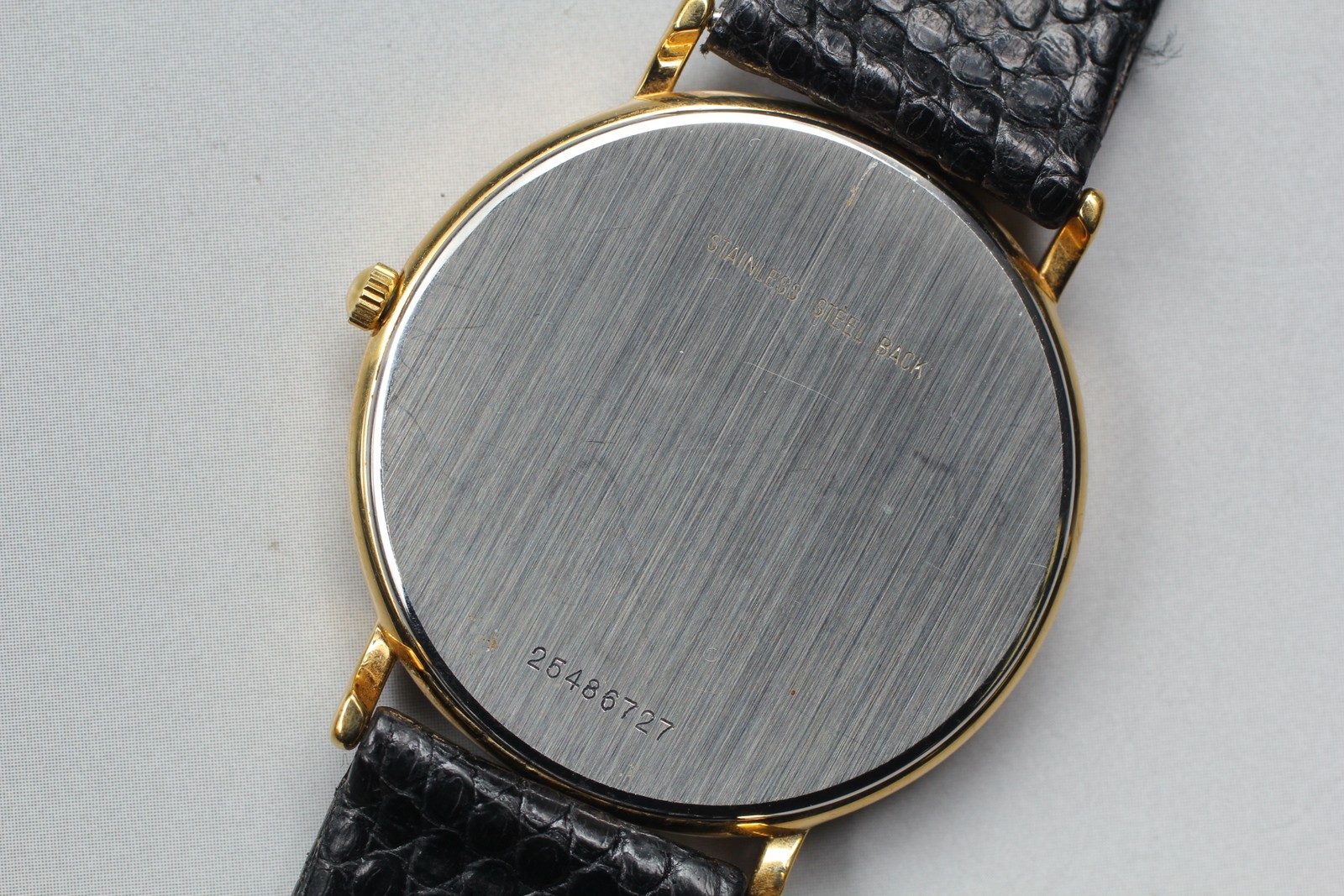 This watch is absolutely stunning! The gold dial catches the light beautifully and looks way more expensive than what I paid. Even though it's pre-owned, it arrived in perfect condition with just minor wear. The quartz movement keeps perfect time, and the original black leather band is so comfortable. Definitely my new favorite accessory!