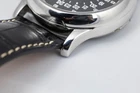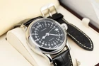 A thoughtfully executed modern reissue of the Longines Swissair reference 6603, a rare (less than 100) and historically significant pilot’s watch originally produced in the 1950s. This contemporary version remains faithful to the spirit and design language of the original, while benefiting from updated manufacturing techniques and materials. Measuring 47mm in diameter, the case size mirrors the large proportions typical of mid-20th century aviation watches, designed for maximum legibility in cockpit conditions. The oversized onion-style crown further emphasizes its utilitarian roots, allowing for easy adjustment even while wearing gloves. The dial retains the clean and practical layout associated with its vintage predecessor, offering a clear connection to its Swissair heritage. This particular example is in excellent condition, showing minimal signs of wear and presenting well both cosmetically and mechanically. It is accompanied by its original inner and outer presentation boxes, along with the instruction book and warranty card. Model: L2.751.4.53.4 Size: 47MM Material: SS Bracelet/Strap: Leather