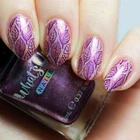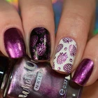 You will receive (1) bottle of Looking for a Star Stamping Polish (Metallic Dark Purple). Size of bottle is 0.37 fl oz (11 ml). 7 Free (No Formaldehyde, No Dibutyl Phthalate (DBP), No Toluene, No Formaldehyde Resin, No Camphor, No Triphenyl Phosphate (TPHP), No Xylene) Cruelty Free & Vegan Made in China Ingredients: Butyl Acetate, Ethyl Acetate, Acrylate, Copolymer, Nitrocellulose, Denatured Ethanol, Acetyl Tributyl Citrate, Isopropanol. May Contain: Mica, CI 77266, CI 77891, CI 19140, CI 15850, CI 15880, CI 42090, CI 77742, CI 77510 Warning: Due to nail polish being considered a hazardous material we are only allowed to ship nail polishes within the continental United States and by ground service. There are no exceptions to this rule no matter what shipping you selected. Please choose FedEx Ground (2-6 business days) or USPS Ground (5-15 business days) shipping on checkout. How To Use: -Remove your new stamping plate from its packaging and remove the plastic protective film from over the metal. When you first receive your plate and after every use wipe clean your plate with acetone or non-acetone nail polish remover without oils. Сlean your stamper with tape by using the sticky side to remove dry polish. -Quickly apply a thick layer of stamping nail polish in a few strokes over the design you wish to stamp. -Hold a plastic card firmly at a 45 degree angle and lightly scrape across the plate to remove excess polish. Try to only scrape once, do not push card to plate too hard and work as quickly as possible to avoid drying. -Immediately after scraping, quickly transfer the design to your stamper by lightly rolling once across the design from one side to the other or pushing once straight into the design. If your image does not transfer you may need to work faster, scrape differently (less pressure or new angle), prime your stamper (with acetone or gentle nail file/buffer) or try another opaque nail polish that doesn’t dry very fast. -Quickly transfer the image from the stamper onto a nail with an oil free and completely dry base color. With a squishier stamper push the stamper straight to the nail, with other stamper heads it might work better to roll it once from side to side to transfer image. Remove excess nail polish from your skin and cuticles by using a flat brush or cotton swab dipped in acetone or nail polish remover, you could use tape to lift excess polish from your skin as well. -When design is completely dry on your nail, apply a layer of fresh top coat with as few strokes as possible. Place a big drop at the cuticle and hold brush parallel to the nail while applying trying not to touch the nail with the bristles, this helps prevents smearing. We love to see your beautiful nail designs!