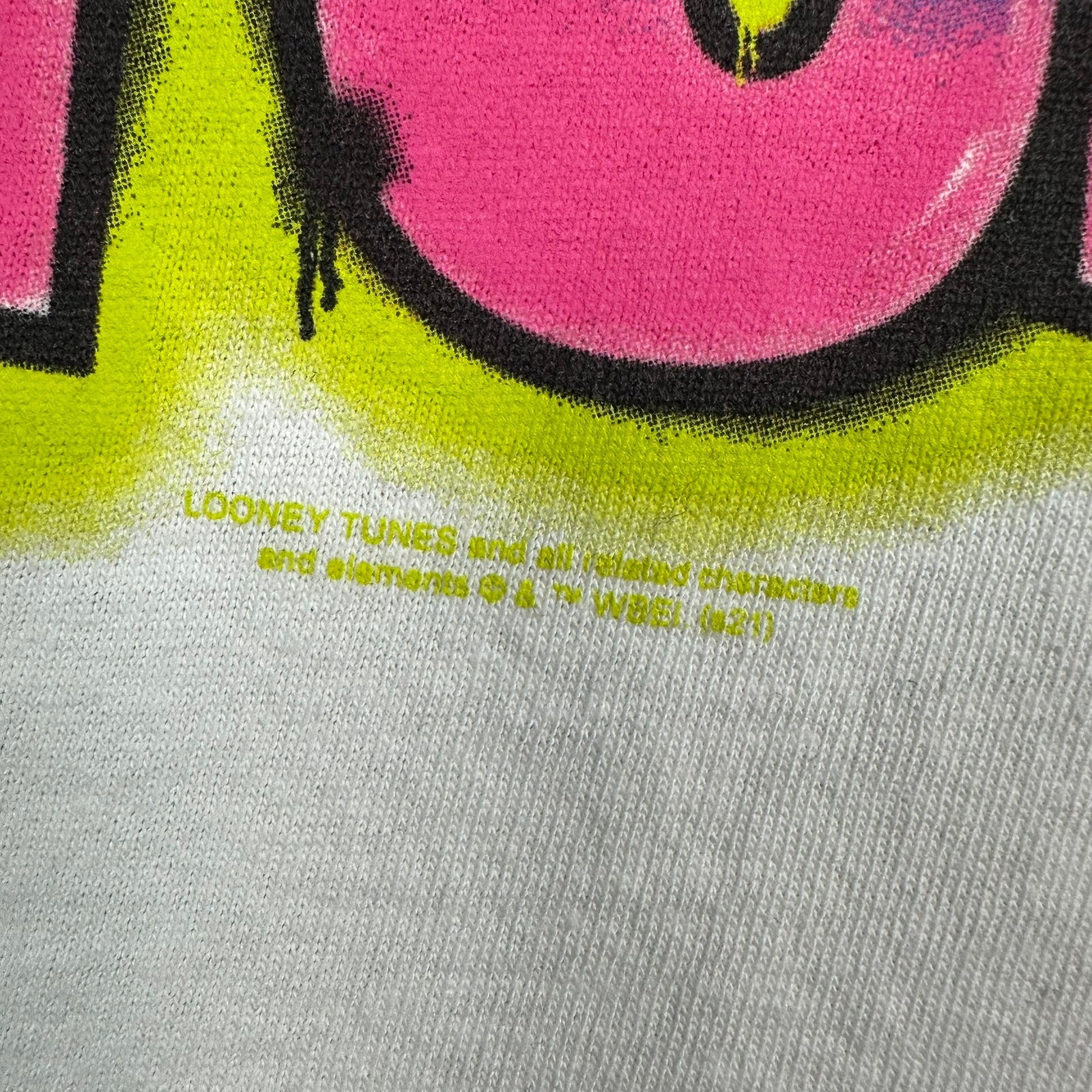 Looney Tunes Airbrush Style T-Shirt Bugs Bunny Daffy Taz Wile E. Coyote White Size Medium. In good used condition with no holes or stains! Unleash your inner child with this vibrant Looney Tunes T-shirt! The iconic characters Bugs Bunny, Daffy Duck, Tasmanian Devil, and Wile E. Coyote leap to life in a colorful graphic print. The crisp white backdrop makes the design pop, ensuring you'll stand out in any crowd. This tee offers a comfortable fit and a nostalgic vibe that's perfect for casual outings, weekend adventures, or simply lounging at home while reliving your favorite cartoon moments.