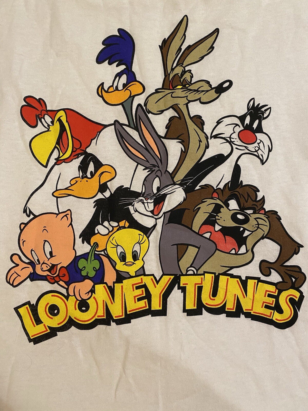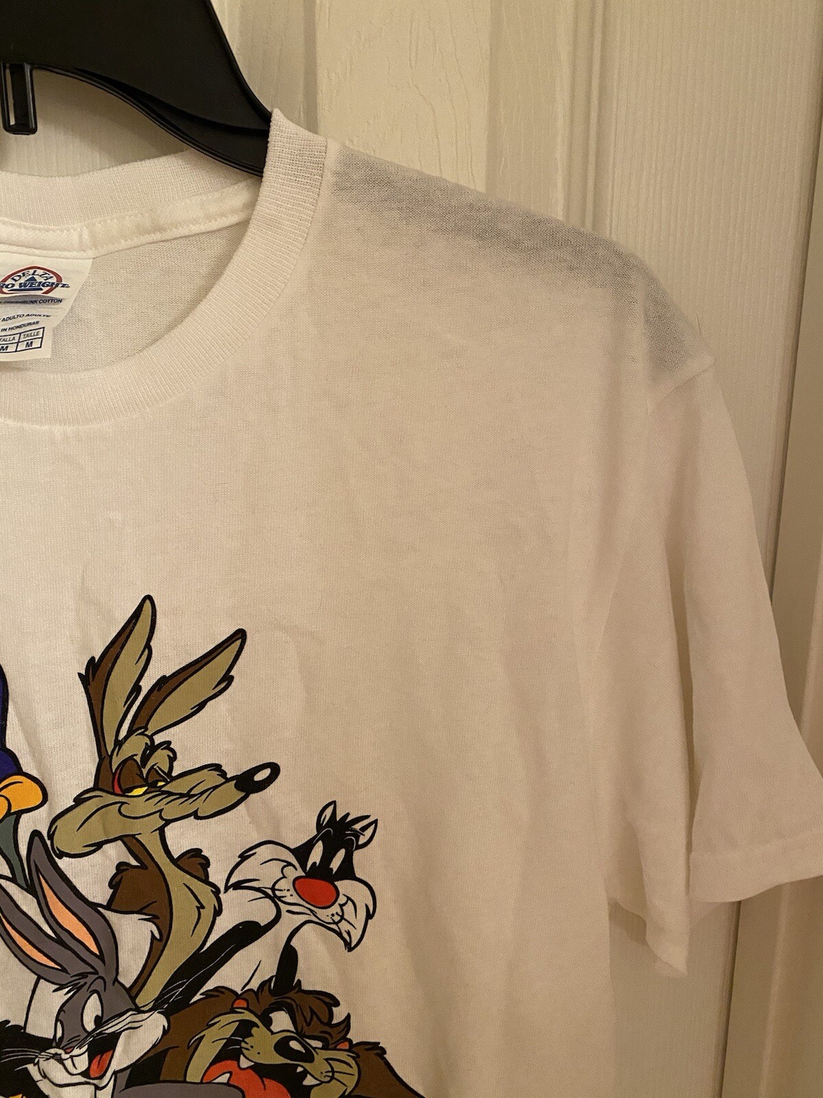 This fun Looney Tunes graphic is on a preshrunk 100% cotton Delta Pro Weight white Tshirt. Unisex size medium. Please review measurements in the photos and compare to one of your own tshirts to ensure an accurate fit.
