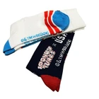 Design 1: Bugs Bunny wearing medals + American flag & rings; color blocked heel & toe Design 2: Daffy Duck with 'Team USA' text, American flag & rings; stripes & color blocking -stretch-knit fabric -ribbed cuff -75% cotton, 22% polyester, 3% spandex Excellent/unused condition