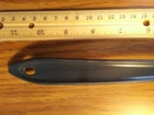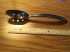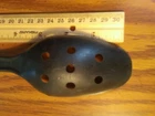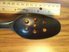 Lopol Hutzler spoon. Used, has a tiny melt mark on side of spoon bowl, minor. Over all, very good. No.700 Black, plastic strainer spoon.