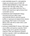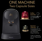 Indulge in the ultimate coffee experience with the L'or Barista System Coffee & Espresso Machine Combo by Philips in matte black. This machine is perfect for coffee lovers who desire a café-inspired quality in the comfort of their own homes. It features a 19-bar signature high-pressure brewing system that extracts the full flavor of your coffee, Brews six cup sizes to choose from, Different coffee and Espresso styles, including espresso, mocha, latte, and cappuccino. The machine is fully automatic, heats up in 20-25 seconds, and has a 40oz removable water tank. The L'or Barista Machine is compatible with Nespresso Original capsules and has a wide selection of capsules to choose from. It has a dual capsule recognition feature, auto shut-off, and automatically detects the size of the capsule for a perfect brew. The machine is made of high-quality plastic and has a sleek matte black finish, making it conveniently fit your space. It comes with a user manual, water tank, and drip tray. Get ready to enjoy the perfect cup of coffee with the L'or Barista System Coffee & Espresso Machine Combo. Brand New.
