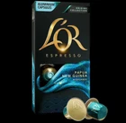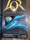 NEW MANUFACTURER original packaging! Espresso Coffee Capsules 30 Compatible with Nespresso Original Line. FLAVOR: PAPUA NEW GUINEA HIGHLANDS L'OR (Lor) Coffee ESPRESSO Pods Capsules Compatible with Nespresso Original Line Machines only (Does not fit Vertuoline) Coffee capsules L'or Colombia - designed for NESPRESSO coffee machines. The picturesque landscape and Eldorado legend of Columbia rural areas inspired Colombia - a lush espresso with an elaborate, expressive character and long -lasting taste. Let's be enchanting the greatness of the mysterious culture that opened the way for exploration, expeditions and the discovery of the best types of beans in the world. Intensity level - 8 L'or coffee capsules are certified by UTZ certificate. Ingredients: The roasted beans ground coffee Nutritional information per 100 grams: - NEW in sealed manufacturers box!! (10 capsules per box/3 boxes per order/30 Capsules Total) Sold as seen in photos. Ships to lower 48 states.