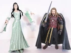 Lord Of The Rings 6" Soft Cape Figures 2002 - 03 NLP Marvel . Both included 2002 queen arwen with the green gown is 6 3/4" tall nlp Marvel. 2003 eomer is 6" tall nlp Marvel.