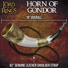 Embrace the legendary tale of Middle-earth with the Horn of Gondor Replica, a meticulously recreated piece from the acclaimed The Lord of the Rings film series. This 19” horn, an authentically detailed reproduction of the actual filming prop built by Weta Workshop, brings to life the valiant story of Boromir, the Eldest son of Denethor, and his crucial role in the Fellowship's quest to destroy the One Ring. Crafted with precision, the horn is made of finely cast polyresin, designed to replicate the look of real polished brass and steer horn, embodying the essence of Middle-earth’s early days. It is complemented by a 62” genuine leather shoulder strap, allowing it to be carried as it was by Boromir or displayed as a significant piece of cinematic history. The horn is presented with a polystone wall display, featuring the revered Tree of Gondor motif, providing a striking backdrop that captures the heart of Gondor's heritage. This piece not only serves as a collectible but as a homage to the enduring spirit of those who protected the kingdom until the rightful king returned. Included with this remarkable replica is a certificate of authenticity, offering assurance of its quality and its indisputable connection to the legendary film series. Whether for display in your collection, as a gift for a fan of the series, or as a symbol of the courage and sacrifice embodied by the characters of The Lord of the Rings, the Horn of Gondor Replica stands as a testament to the artistry and storytelling of one of cinema’s most beloved franchises. AUTHENTIC FILM PROP REPLICA: This detailed replica is crafted based on the actual filming prop used in The Lord of the Rings, built by the renowned Weta Workshop, ensuring a piece of cinematic history. EXQUISITE MATERIALS AND CRAFTSMANSHIP: Made of finely cast polyresin for durability, with molded details to mimic polished brass and steer horn, paired with a genuine leather shoulder strap for carrying or display. POLYSTONE WALL DISPLAY INCLUDED: Comes with a polystone wall display, intricately sculpted with the iconic Tree of Gondor motif, providing a majestic presentation suitable for any collection. CAPTURES THE LEGACY OF BOROMIR: Represents the Horn of Gondor as carried by Boromir, a symbol of the Stewards of Gondor's lineage and their role in the War of the Ring, echoing the heroism and sacrifice of one of Middle-earth’s valiant warriors. CERTIFICATE OF AUTHENTICITY: Each replica includes a certificate of authenticity, assuring collectors of its genuine pedigree and connection to the beloved Lord of the Rings film series.
