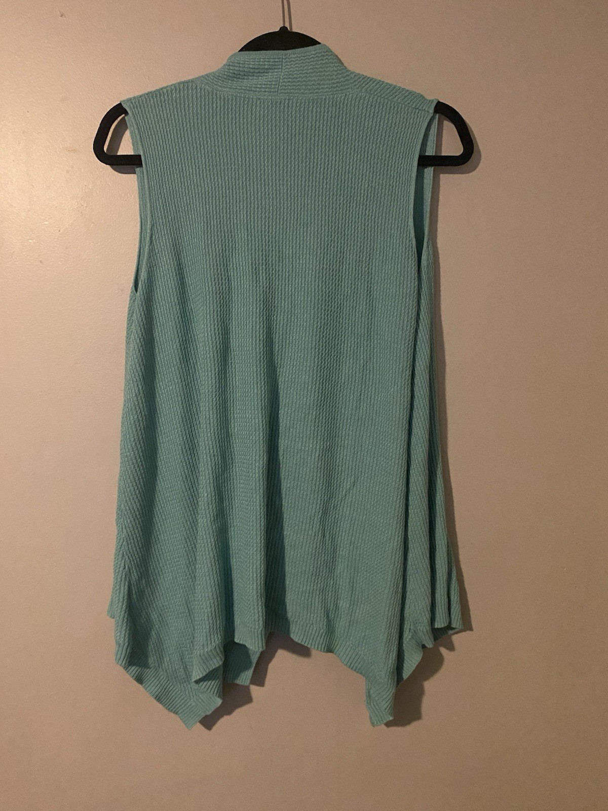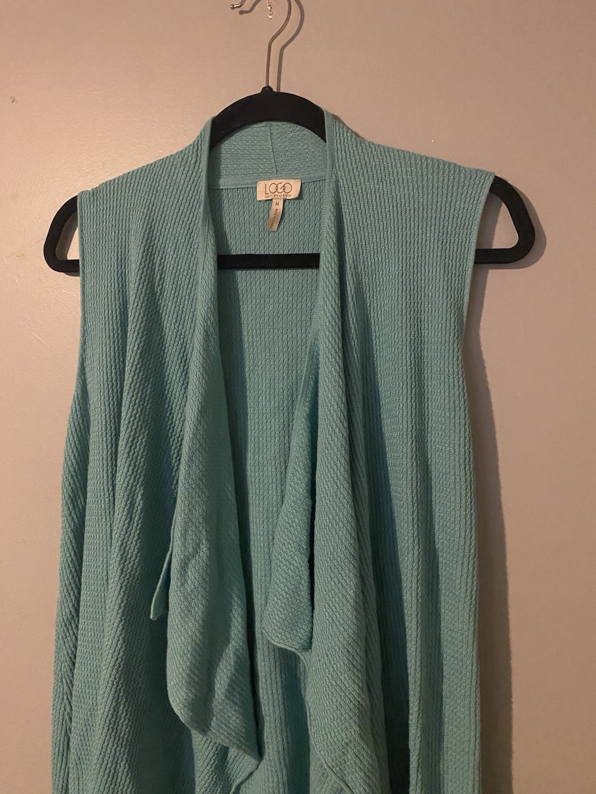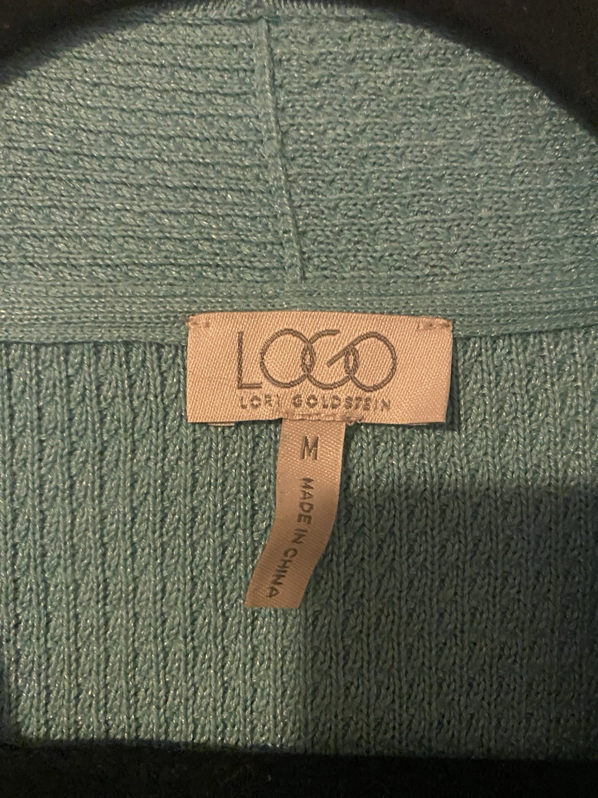 Lori Goldstein Logo Knit Tunic Blue Vest Cardigan Size Medium