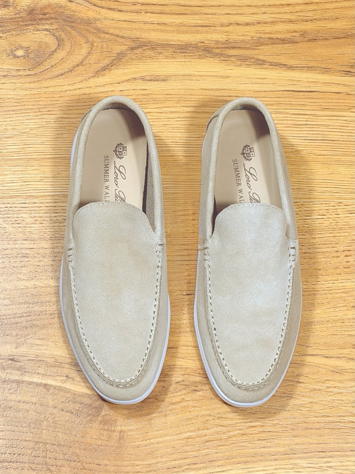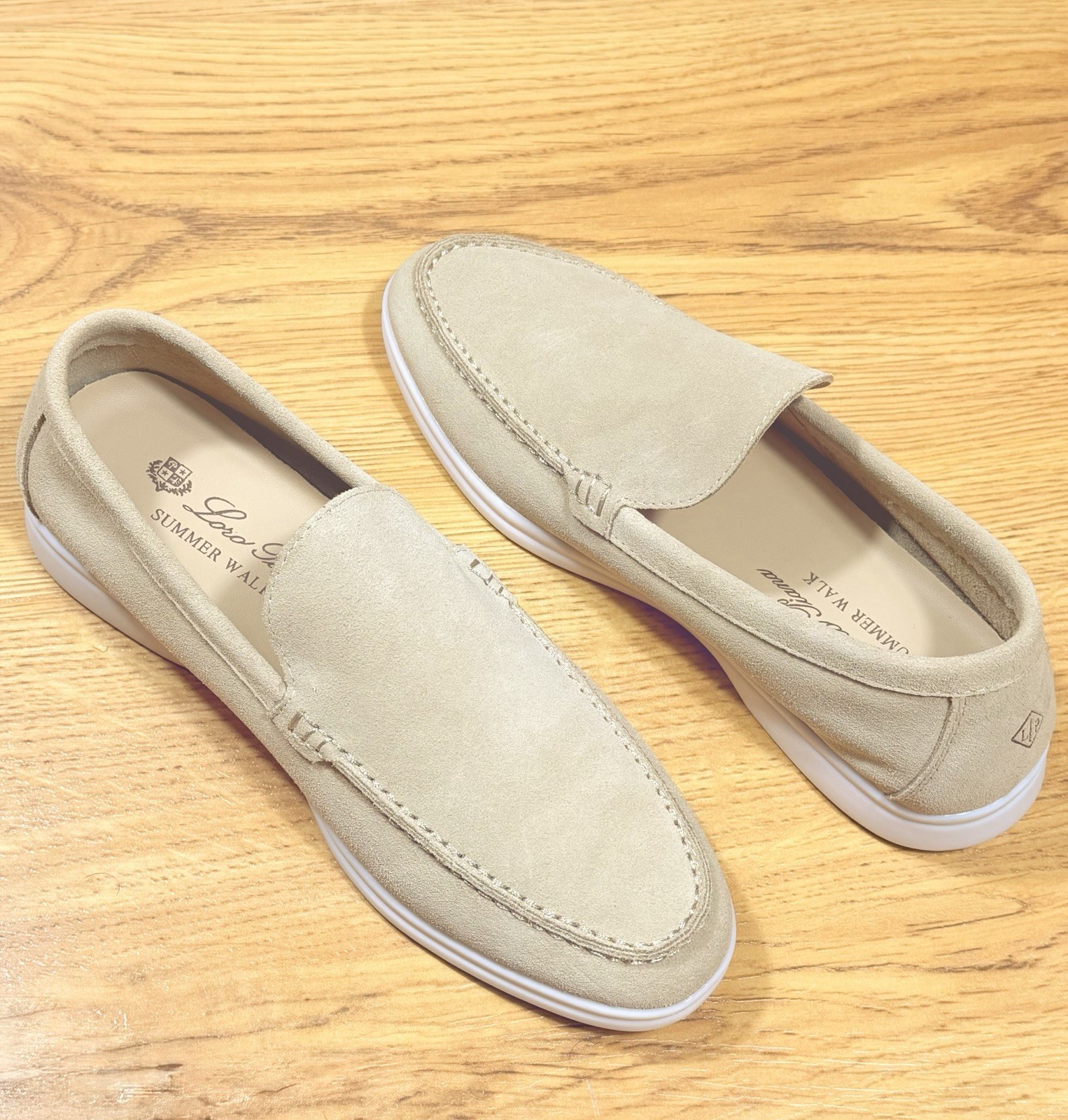 Brand: Loro Piana Model: Summer Walk Size: EU 38 ( woman’s) Color: Beige Material: Suede upper with white rubber sole Condition: new Authentic Loro Piana Summer Walk loafers. Luxury casual slip-on shoes designed for comfort and everyday wear. Ships same or next business day. Carefully packaged. U.S. shipping only. Please review all photos for exact condition.