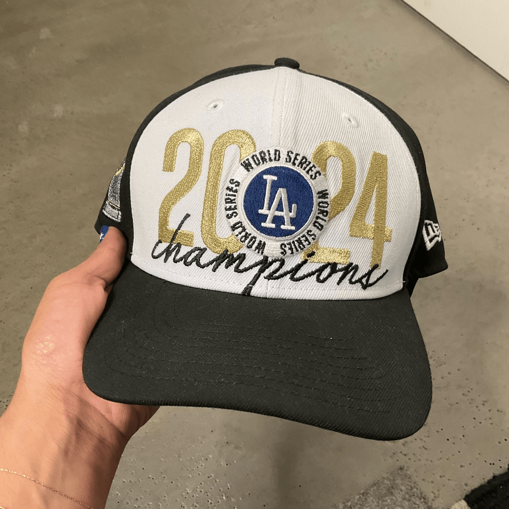 Los Angeles Dodgers 2024 World Series Champions Locker Room Get hyped, Los Angeles - for the eighth time in team history, the Dodgers have taken the Fall Classic. Be a part of history with the Official Cap of the Champs. The Los Angeles Dodgers 2024 World Series Champions Locker Room 9SEVENTY Stretch-Snap Cap features an embroidered Dodgers logo with a 2024 World Series Champions wordmark at the front panels. Additional details include the Commissioner's Trophy embroidered at the right-wear side and the MLB Batterman logo above an snapback closure at the rear.