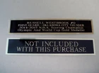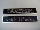 THIS PURCHASE IS FOR THE NAMEPLATE ONLY !!!!!!! BOBBY'S HANG-UPS PREMIUM QUALITY ACRYLIC DISPLAY CASES AND CUSTOM ENGRAVED NAMEPLATES SINCE 1999 THESE NAMEPLATES ARE GREAT FOR DISPLAY CASES, FRAMED AND MATTED PHOTOS, SHADOW BOXES, PLAQUES, ETC. WE SPECIALIZE IN CUSTOM ORDERS OF ALL NAMEPLATES. WHETHER IT'S FOOTBALL, BASEBALL, BASKETBALL, HOCKEY, GOLF, BOXING OR ANY PERSONALIZED NAMEPLATE THAT YOU MAY NEED. WE CAN MAKE JUST ABOUT ANY NAMEPLATE THAT YOU ARE LOOKING FOR. OUR NAMEPLATES ARE TRIPLE ENGRAVED TO GUARANTEE CRISP, READABLE TEXT. NAMEPLATES ARE HAND POLISHED BEFORE SHIPPED TO MAKE SURE THE ENGRAVING REALLY STANDS OUT. ALL NAMEPLATES HAVE HIGH QUALITY DOUBLE SIDED TAPE TO ENSURE IT WILL STAY IN PLACE. CLICK HERE AND GO VISIT OUR EBAY STORE FOR MORE GREAT ACRYLIC DISPLAY CASES AND ENGRAVED NAMEPLATES !!!! PLEASE CHECK OUT OUR EBAY STORE, AND CHECK OUT ALL OF OUR ACRYLIC DISPLAY CASES AND NAMEPLATES. IF YOU DON'T SEE THE NAMEPLATE YOU ARE LOOKING FOR OR IF YOU ARE LOOKING TO PLACE A CUSTOM ORDER, PLEASE FEEL FREE TO EMAIL US AND WE WILL GET WORKING ON YOUR ORDER RIGHT AWAY. THANK YOU! THIS PURCHASE IS FOR A LOS ANGELES LAKERS NAMEPLATE. IT IS BLACK ON BRASS BACKED ON POLISHED GOLD PLATING. THE NAMEPLATE MEASURES APPROX 1.25" X 6" IN TOTAL WITH ENGRAVED TEXT THAT READS: 2001-2002 LOS ANGELES LAKERS 2002 N.B.A. CHAMPIONS Defeated The New Jersey Nets 4 Games To 0 Phil Jackson ~ Head Coach, Shaquille O'Neal ~ Finals M.V.P. IF YOU ARE PURCHASING DIFFERENT TEAM OR PLAYER NAMEPLATES, AND DIFFERENT SIZES AT THE SAME TIME, PLEASE USE THE SHOPPING CART FEATURE AND PLEASE REQUEST A TOTAL BEFORE MAKING PAYMENT TO ENSURE YOU GET THE PROPER COMBINED SHIPPING DISCOUNT. THANKS FOR GIVING US YOUR BUSINESS. Be sure to add me to your favorites list !