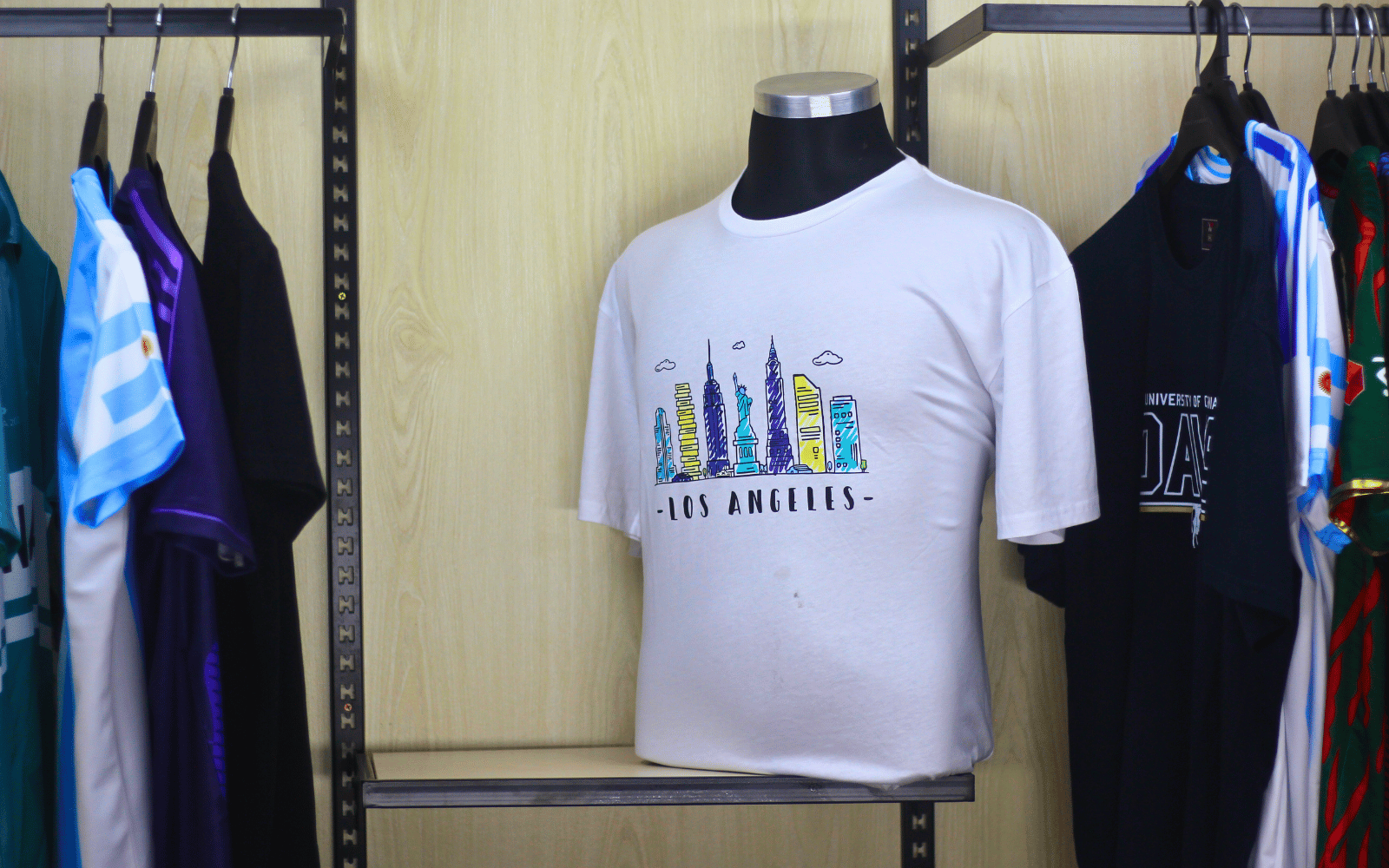 What the item is: You are introducing the "Los Angeles Premium Cotton T-shirt" – This top-tier shirt is meticulously crafted for those who demand both elegance and durability in their everyday wardrobe. Made from high-quality cotton, it offers a soft, breathable feel that is perfect for any season. The cotton fabric is not only gentle on your skin but also maintains its shape and vibrant color, wash after wash Who made it: Meticulously manufactured in the renowned textile hub of Bangladesh, this t -shirt bears the mark of quality and expertise—dedication to producing high-quality apparel. What condition the item: This product is in brand-new condition, ready to be worn, and proudly displayed. It is brand new and ready to accompany you on countless t -shirt adventures. Size or dimensions of the item: The t -shirt is available in various sizes and has short sleeves, making it perfect for outdoor casual outings. The t -shirt size can be conveniently determined by referring to the comprehensive size chart provided in the accompanying picture. From small to extra-large, we ensure a comfortable and stylish fit for individuals of different sizes and preferences. Others Information: Cotton Fabric. Washing instructions: Hand wash or machine wash, do not soak for a long time, and the washing liquid temperature should not exceed 45oC. More suitable for a natural range of activities, this performance short-sleeved workwear T-shirt can keep you comfortable in the office and gym all day long.