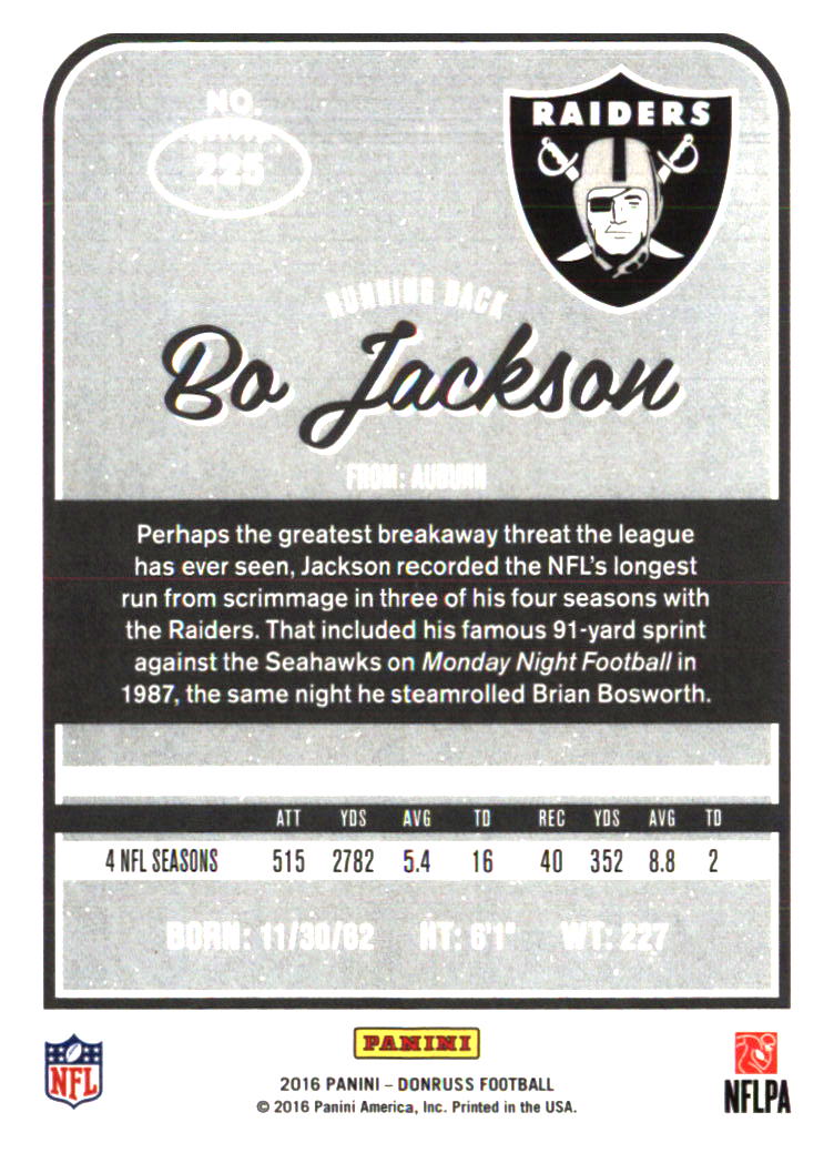 Another mint football card of the bad ass Bo Jackson. The guy was just so awesome the way if he didn't run a defender over he'd outrun them. If you've never watched a special on him you really need to. Thanks again toomanycardz