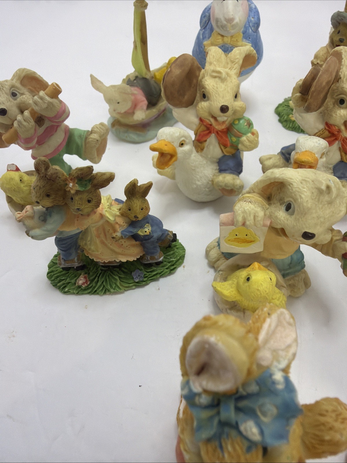 This product is a lot of 17 Easter decor figurines, including bunnies and bears made from ceramic and resin. These figurines are perfect for adding a festive touch to your home during the Easter season. With a variety of designs and materials, this collection offers a fun and colorful way to celebrate the holiday. Whether used for decorating your home or as a gift for Easter enthusiasts, these figurines are sure to bring joy and charm to your Easter celebrations.