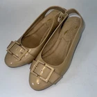 This product is a lot of two pairs of Aerosoles heels in size 8M with a beige color and black patent. The heels are slingback style with a low block heel, slip-on closure, and are padded for comfort. Made of leather, they are perfect for women looking for stylish and comfortable footwear with a touch of elegance.