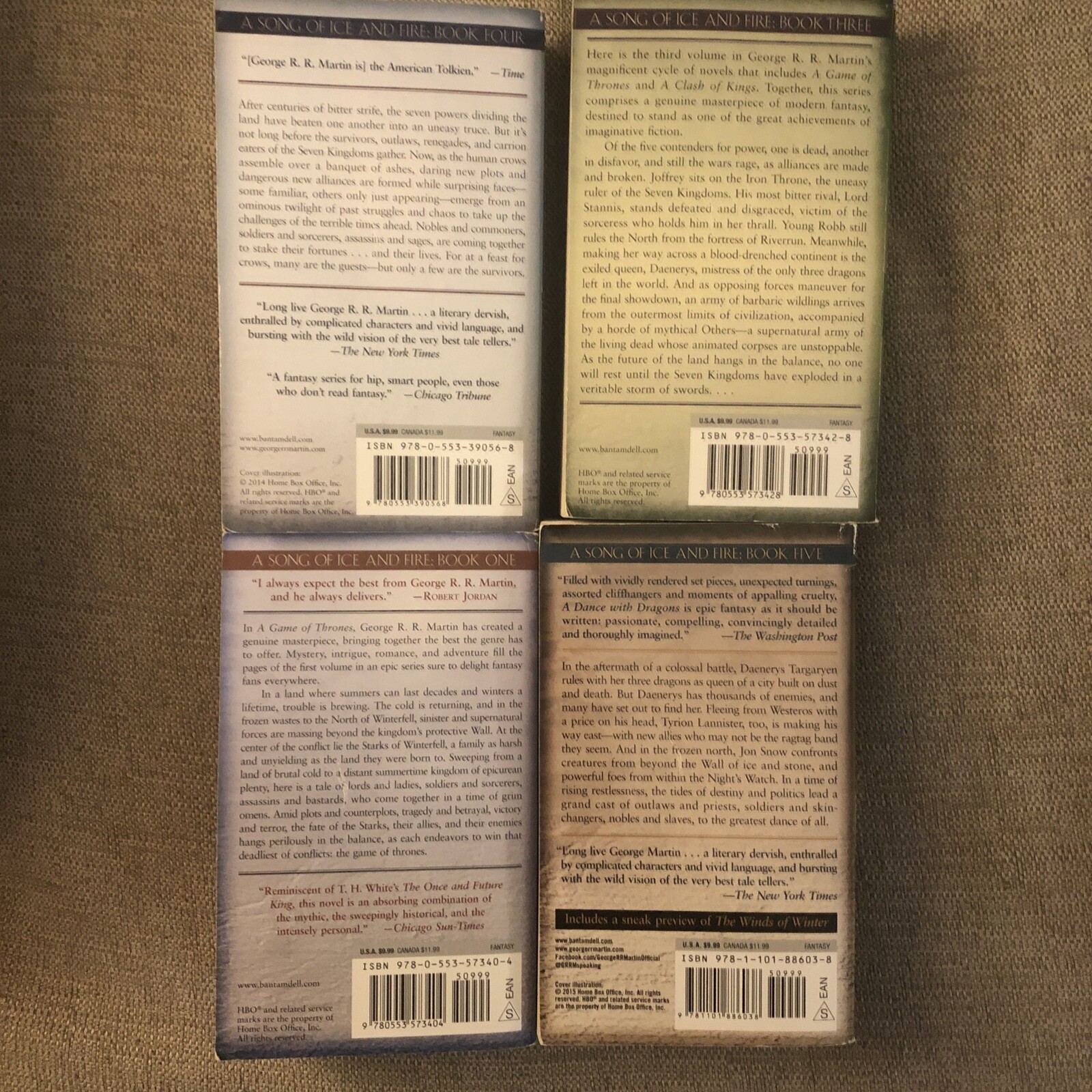 Lot 4 Game of Thrones George R. R. Martin Books Includes Game of Thrones Dance with Dragons Storm of Swords Feast of Crows. Good paperback copies .. good reading copies .