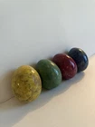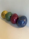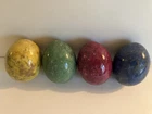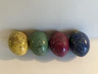 Lot of 4 vintage polished alabaster stone Easter eggs handcrafted in Italy. Imported by Action in Pennsylvania. As shown, marbled pattern on all 4. Green, yellow, blue, and purple-red. 2 1/4” tall. Vintage/age-related stone wear (variation in color, roughness, scuffs, etc.) Thanks for looking. Now for the fine print…… I use the good old USPS for all shipping. Despite their recent increase in shipping rates, I try to charge fair shipping. On certain items I charge a $1.00 handling fee to offset the price of bubble wrap, boxes, Styrofoam peanuts, etc. I’m very happy to combine shipping on multiple items that you purchase. I ship every day; Monday through Friday (except for snow and ice events) but do not ship on Saturdays.