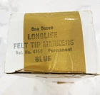 Lot 40 Pcs New Vintage LongLife Markers Blue Felt Tip Permanent Chisel Tip USA You will get 40 of these markers that have never been used. There are 3 boxes of 12 markers each + 4 more from another box. I don't really know how old they actually are. I bought quite a lot of them back around 1987 from a well-known leathergoods manufacturer that was going out of business. Over the years they did serve me very well. These days my business is quite different from those good old days so I'm selling my excess inventory. These are all the same color - a nice rich royal blue color. Please do not hesitate to contact me if you have any questions. Thanks for Looking! RETURN POLICY: NO RETURNS ON THIS ITEM - i HOPE YOU UNDERSTAND