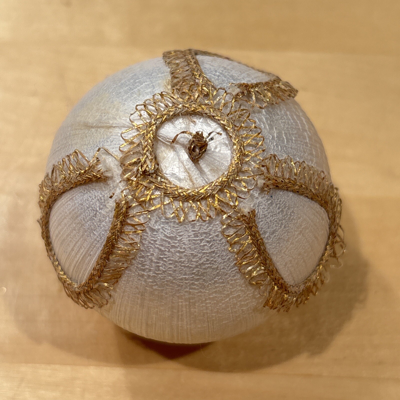 Lot 5 Vintage Silk Wrapped Ball Ornaments Satin Sheen Stripes 2" Diameter Christmas Solid vintage condition. Some fading and spots due to age / normal use. Pre-owned. See photos for condition details. To upcycle, I reuse shipping material as often as possible. Buy more from my store and save on shipping.