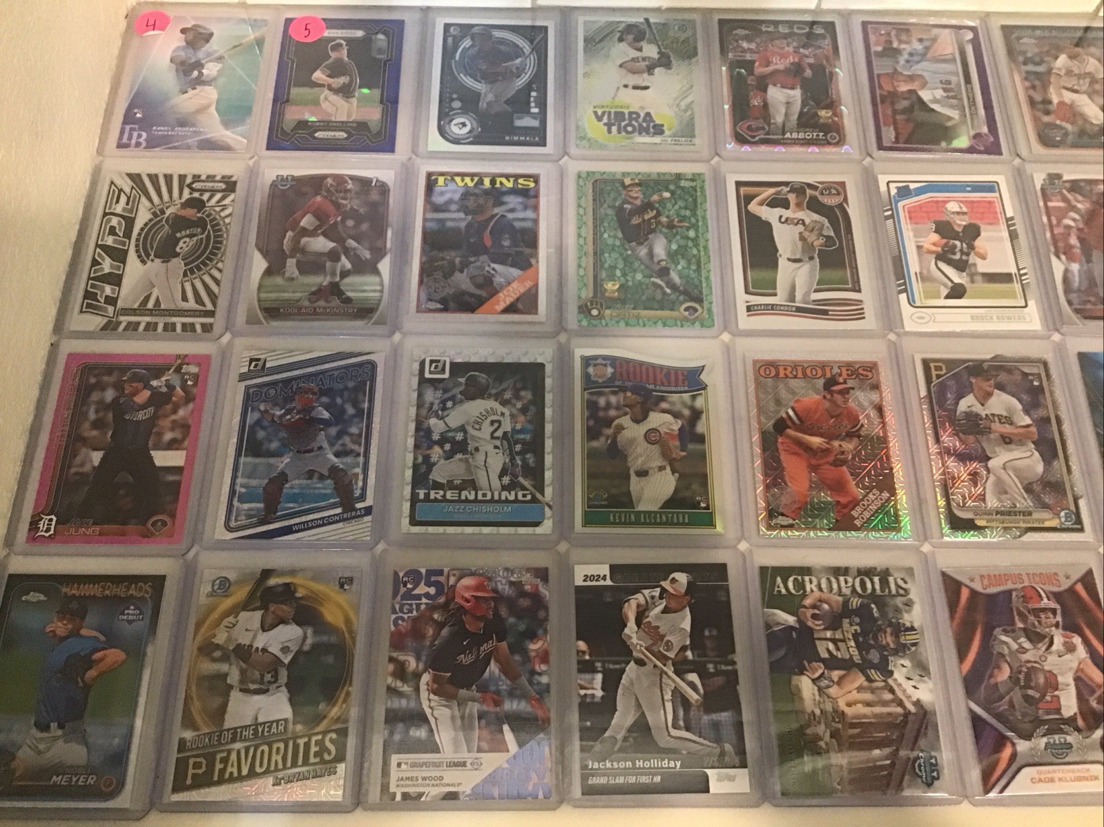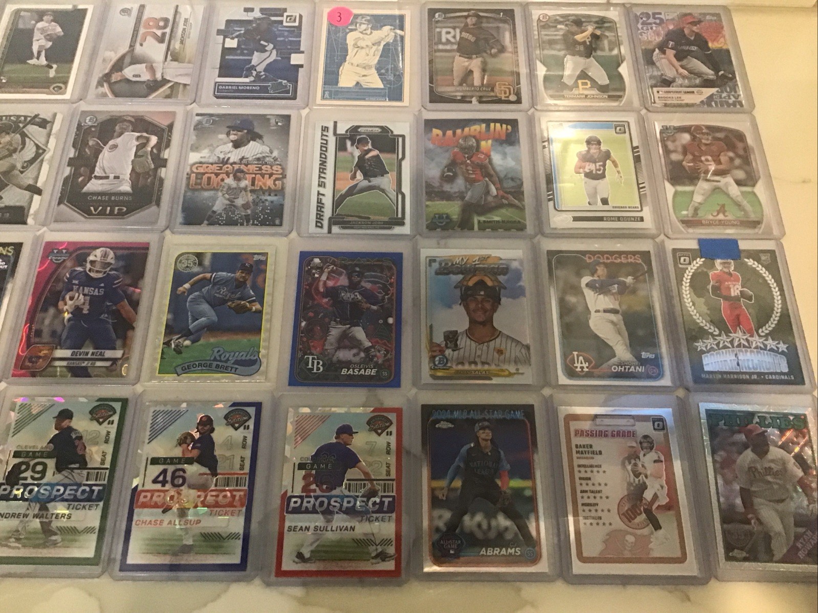 This lot of 115 baseball and football cards has inserts, refractors, and numbered cards. This lot also has a patch and a rookie auto. Message me with any questions.
