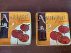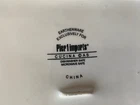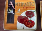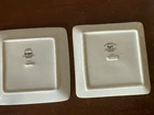 This lot includes 2 Pier 1 Cucina 8.5" square salad plates. These earthenware plates feature a contemporary design with hand-painted details in gold, green, and red colors, reflecting an Italian food theme. The plates are part of the retired Pier 1 Cucina Tableware collection and are stackable, microwave and dishwasher safe. One does have a tiny chip on the side. See pictures